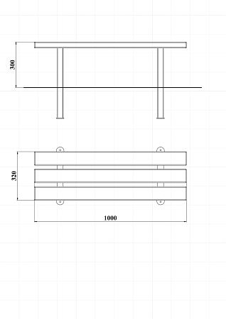 Лавочка изготовлена из двух металлических ножек и деревянного бруса.