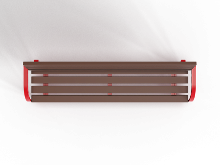 Лавочка со спинкой изготовлена из металлического каркаса с подлокотниками и бруса из древесно-полимерного композита (ДПК).