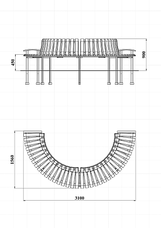 Лавочка - разборная конструкция в форме полукруга, состоит из металлических ножек, металлического каркаса сидения, металлического каркаса спинки и деревянного бруса. Ножки, сидения и спинки крепятся друг другу через болтовые соединения.