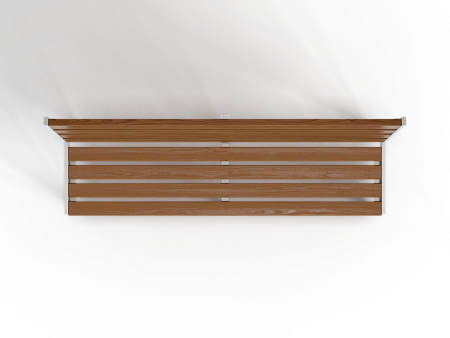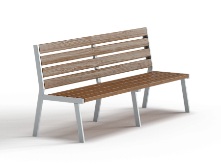 Лавочка со спинкой изготовлена из металлических ножек и бруса из древесно-полимерного композита (ДПК)