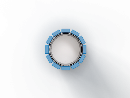 Круглая урна из деревянного бруса голубого цвета на бетонном основании.