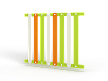 Ограждение длиной 1500 мм из деревянного бруса и фанерных разноцветных балясин