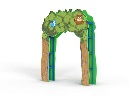 Арка выполнена в виде сборного металлокаркаса с фанерными накладками с художественным оформлением в лесной тематике.