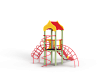 Детский игровой комплекс состоит из башни с крышей, горкой, спиралью наклонной, ограждения с лазом, лианы наклонной, шестом спиралью, перекладинами и ручек вспомогательных.