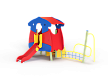 Детский игровой комплекс состоит из башни с продолжением в виде спортивного элемента, который состоит из металлического элемента с сеткой полипропиленовой, металлической ручки и изогнутой металлической стойки, крепящихся к столбу. На башне установлена крыша, лестница, горка, фанерные ограждения.