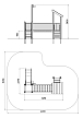 Детский игровой комплекс состоит из двух башен крышами. На одной из башен установлена лестница, горка, балкон, шведская стенка. На другой башне установлены альпинистская стенка, перекладина с канатом, шест спираль, шведская стенка, фанерное ограждение и ручки вспомогательные. Башни соединены полипропиленовой сеткой и столбом. Все резьбовые соединения должны быть закрыты разноцветными пластиковыми заглушками.