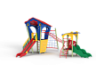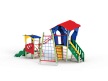 Детский игровой комплекс состоит из двух башен. На одной из башен установлена лестница, горка, альпинистская стенка, ограждение, ручки вспомогательные и внешняя сетка полипропиленовая, соединенная с башней рукоходом. На другой башне установлены трап, лиана, шведская стенка, ручки вспомогательные и ограждение. Башни соединены между собой металлическим рукоходом.