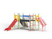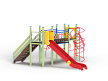 Детский игровой комплекс состоит из двух башен. На первой башне установлена лестница, горка и ограждение из бруса с перекладинами. Первая башня соединяется со второй башней подвесным мостом. На второй башне установлено ограждение с круглым вырезом, спираль наклонная, лиана и шест-спираль.