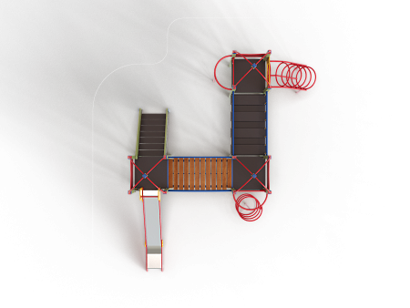 Детский игровой комплекс состоит из трёх башен с металлическими крышами. На первой башне установлена лестница, горка, фанерное ограждение и она соединяется со второй радиусным мостом с металлическими перилами. На второй башне установлено фанерное ограждение, шест спираль и она соединяется подвесным качающимся мостом с третьей башней. На третьей башне установлена спираль наклонная, шест и фанерное ограждение.