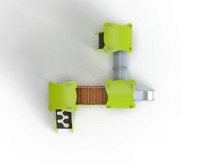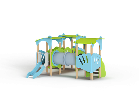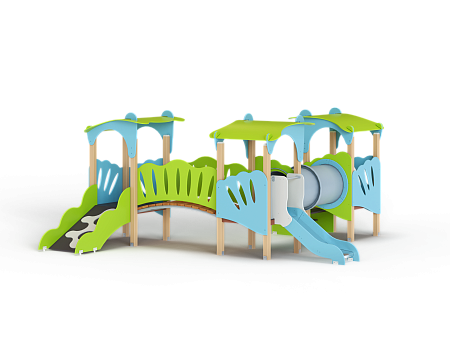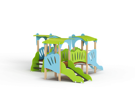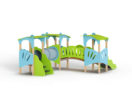 Детский игровой комплекс состоит из трёх башен с фасонными крышами. На первой башне установлена лестница и фасонные фанерные ограждения. На второй башне установлена горка и фасонное фанерное ограждение . На третьей башне установлены фигурный трап и фасонные фанерные ограждения. Первая и вторая башни соединены пластиковой трубой переходом, вторая и третья соединены радиусным мостом с фасонными фанерными перилами.