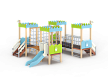 Детский игровой комплекс состоит из четырёх башен с крышами. На первой башне установлена ограждение фанерное с декоративной накладкой, лестница, перекладины и декоративные флажки. На второй башне установлено ограждение фанерное с декоративной накладкой, лиана наклонная и перекладины. На третьей башне установлено ограждение фанерное с декоративной накладкой, декоративные флажки и лестница. На четвертой башне установлено ограждение фанерное с декоративной накладкой, перекладины и горка. Первая башня соединена подвесным качающимся мостом со второй. Вторая соединяется с третьей сеткой полипропиленовой. Третья соединяется с четвёртой мостом радиусным с металлическими перилами.