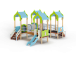 Детский игровой комплекс состоит из четырёх башен с крышами. На первой башне установлена ограждение фанерное с художественным оформлением, лестница, перекладины. На второй башне установлено ограждение фанерное с художественным оформлением, лиана наклонная и перекладины. На третьей башне установлено ограждение фанерное с художественным оформлением и лестница. На четвертой башне установлено ограждение фанерное с художественным оформлением, перекладины и горка. Первая башня соединена подвесным качающимся мостом со второй. Вторая соединяется с третьей пластиковой трубой переходом. Третья соединяется с четвёртой мостом радиусным с металлическими перилами.