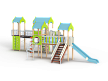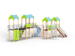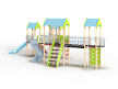 Детский игровой комплекс состоит из четырёх башен с крышами. На первой башне установлена лестница, горка, балкон, перекладина, На второй башне установлены две шведских стенки,  шест с пластиковыми колесами, фанерное ограждение с круглым вырезом, спираль, ручки вспомогательные и перекладины. На третьей сдвоенной башне установлены горка винтовая пластиковая, ограждения металлические, ограждение фанерное, лестница с металлическими поручнями. На четвертой башне установлены альпинистская стенка с перекладиной и канатом, шест спираль, балкон, шведская стенка, перекладина и вспомогательные ручки. Первая и вторая башни соединены прямым мостом с фанерными перилами из балясин, вторая и третья сеткой полипропиленовой, третья и четвертая подвесным качающимся мостом.