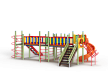 Детский игровой комплекс состоит из четырёх башен. На первой башне установлена лестница, горка винтовая пластиковая, ограждение с круглым лазом, спираль. На второй башне установлены шведская стенка, шест, ручки вспомогательные и перекладина. На третьей башне установлены горка, шест спираль, две шведские стенки, ручки вспомогательные, перекладины. На четвертой башне уста-новлены трап-барабан с перекладиной и канатом, две шведские стенки, перекладины и вспомогательные ручки. Четвертая башня имеет продолжение в виде вынесенной шведской стенки и соединяется с ней перекладинами усиленными. Первая и вторая башни соединены прямым мостом с фанерными перилами из балясин, вторая и третья прямым мостом с фанерными перилами из балясин, вторая и четвертая разновысоким мостом с фанерными перилами..
