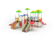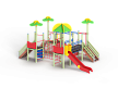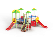 Детский игровой комплекс состоит из четырех башен с крышами. На первой башне установлена лестница, ограждение фанерное, ручки вспомогательные, перекладины и альпинистская стенка. На второй башне установлены горка, ограждение фанерное и перекладины. На третьей башне установлены лестница, шест, альпинистская стенка, перекладины и ручки вспомогательные.  На четвертой башне установлена горка, альпинистская стенка, трап барабан с перекладиной и канатом, перекладины и ручки вспомогательные. Первая и вторая башни соединены металлической вертикальной сеткой, вторая и третья башни соединены подвесным качающимся мостом, третья и четвертая башни соединены рукоходом. Все резьбовые соединения должны быть закрыты пластиковыми заглушками.Детский игровой комплекс состоит из четырех башен с крышами. На первой башне установлена лестница, ограждение фанерное, ручки вспомогательные, перекладины и альпинистская стенка. На второй башне установлены горка, ограждение фанерное и перекладины. На третьей башне установлены лестница, шест, альпинистская стенка, перекладины и ручки вспомогательные.  На четвертой башне установлена горка, альпинистская стенка, трап барабан с перекладиной и канатом, перекладины и ручки вспомогательные. Первая и вторая башни соединены металлической вертикальной сеткой, вторая и третья башни соединены подвесным качающимся мостом, третья и четвертая башни соединены рукоходом.