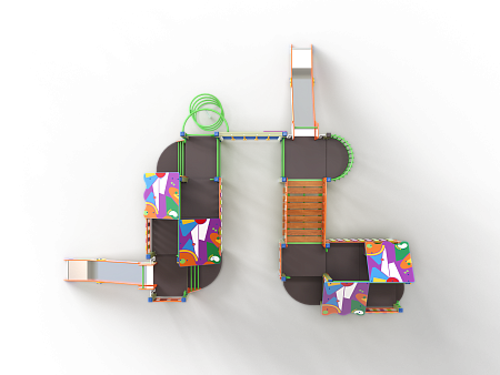 Детский игровой комплекс состоит из шести разновысоких башен с художественным оформлением в стиле граффити. На первой башне установлена лестница, горка, фанерное ограждение и ручки вспомогательные. На второй сдвоенной башне, установлены фанерные ограждения и крыша. На третьей башне установлены фанерное ограждение, шест спираль, лестница и ручки вспомогательные. На четвертой башне установлены горка и балкон. На пятой башне установлено фанерное ограждение, лестница, вспомогательные ручки. На шестой сдвоенной установлены фанерные ограждения и крыша. Третья и четвертая башни соединены сеткой полипропиленовой, четвертая и пятая наклонным мостом с фанерными перилами.