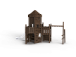 Комплекс выполнен в виде деревянного замка с башней. На башне установлены горка из нержавеющей стали, трап наклонный с камнями для лазания, пушка, ручки, крыша, сетки и балкон. С боковой стороны замка установлен гимнастический комплекс из брёвен и мкталлических ручек, в виде рукохода.