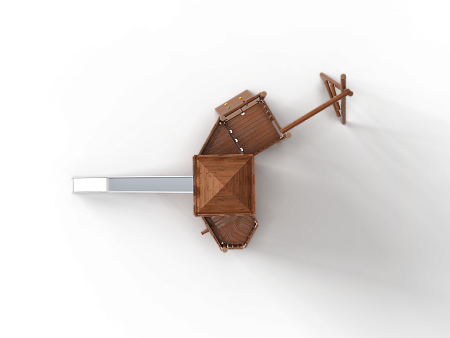 Первый - деревянные столбы и брёвна выполнены из лиственницы, имеют естественную природную форму, тщательно отшлифованы и обладают высочайшей прочностью.