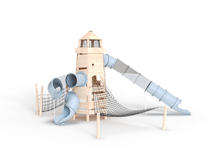 Первый - деревянные столбы и брёвна выполнены из лиственницы, имеют естественную природную форму, тщательно отшлифованы и обладают высочайшей прочностью.