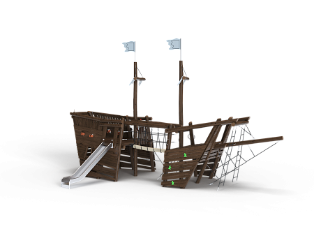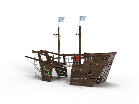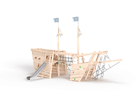 Комплекс выполнен в виде комбинации деревянных столбов и сеток, в совокупности образующих остов корабля с двумя мачтами и двумя башнями с площадками. Башни соединены подвесным бревном.. Обшивка корабля выполнена из деревянного бруса. На задней части корабля установлены пушки, сетка и горка из нержавеющей стали. На носовой части корабля установлены ручки, лестницы канатные и канатный обвес.