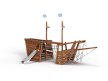 Комплекс выполнен в виде комбинации деревянных столбов и сеток, в совокупности образующих остов корабля с двумя мачтами и двумя башнями с площадками. Башни соединены подвесным бревном.. Обшивка корабля выполнена из деревянного бруса. На задней части корабля установлены пушки, сетка и горка из нержавеющей стали. На носовой части корабля установлены ручки, лестницы канатные и канатный обвес.