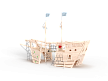 Комплекс выполнен в виде комбинации деревянных столбов и сеток, в совокупности образующих остов корабля с двумя мачтами и двумя башнями с площадками. Башни соединены подвесным бревном.. Обшивка корабля выполнена из деревянного бруса. На задней части корабля установлены пушки, сетка и горка из нержавеющей стали. На носовой части корабля установлены ручки, лестницы канатные и канатный обвес.