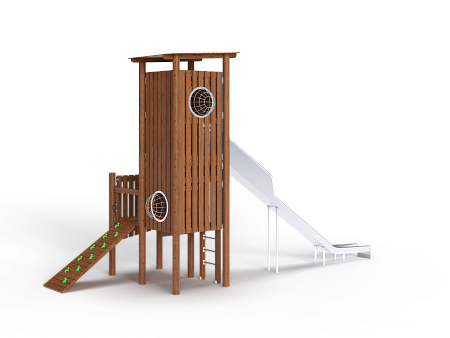 Первый - деревянные столбы и брёвна выполнены из лиственницы, имеют естественную природную форму, тщательно отшлифованы и обладают высочайшей прочностью.