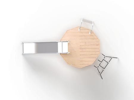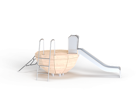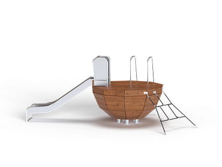 Комплкс выполнен из металлического каркаса покрытого в два слоя порошковой полимерной краской, бруса выполненого из лиственницы, тщательно отшлифованного и обладающего высочайшей прочностью. Деревянные элементы покрыты специальной пропиткой, содержащую антисептики и обеспечивающую ультрафиолетовую защиту от солнечного воздействия. Горки и лестницы выполнены из нержавеющей стали. Сетки и канаты изготовлены из многожильного армированного износостойкого каната.