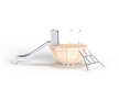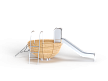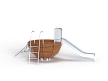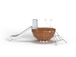 Комплкс выполнен из металлического каркаса покрытого в два слоя порошковой полимерной краской, бруса выполненого из лиственницы, тщательно отшлифованного и обладающего высочайшей прочностью. Деревянные элементы покрыты специальной пропиткой, содержащую антисептики и обеспечивающую ультрафиолетовую защиту от солнечного воздействия. Горки и лестницы выполнены из нержавеющей стали. Сетки и канаты изготовлены из многожильного армированного износостойкого каната.