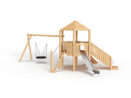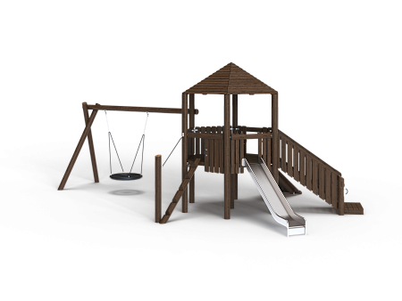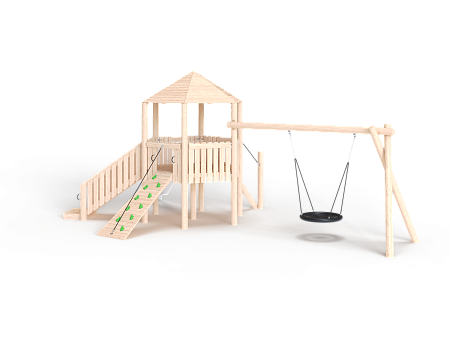 Первый - деревянные столбы и брёвна выполнены из лиственницы, имеют естественную природную форму, тщательно отшлифованы и обладают высочайшей прочностью.