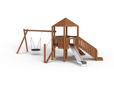 Первый - деревянные столбы и брёвна выполнены из лиственницы, имеют естественную природную форму, тщательно отшлифованы и обладают высочайшей прочностью.
