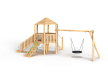 Первый - деревянные столбы и брёвна выполнены из лиственницы, имеют естественную природную форму, тщательно отшлифованы и обладают высочайшей прочностью.