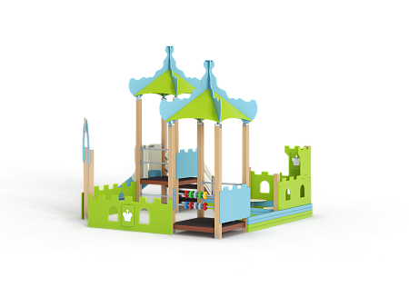 Песочный дворик – модульная конструкция из иг-ровых и развивающих элементов с шахматной тематикой. Конструкция должна быть оборудована двумя башнями- беседками, одной аркой, песочницей, ограждением по периметру. Башни – беседки оборудованы крышами, горкой, лестницей, ограждением, счетами, сидением из фанеры.  Арка с декоративным соединяющим элементом из фане-ры толщиной не менее 24мм. Песочница с четырьмя угловыми фанерными накладками-сидениями по углам и декоративными фанерными огражде-ниями по наружному периметру песочницы. Ограждение по периметру выполнено из фанеры толщиной не менее 24 мм.
