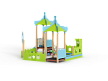 Песочный дворик – модульная конструкция из иг-ровых и развивающих элементов с шахматной тематикой. Конструкция должна быть оборудована двумя башнями- беседками, одной аркой, песочницей, ограждением по периметру. Башни – беседки оборудованы крышами, горкой, лестницей, ограждением, счетами, сидением из фанеры.  Арка с декоративным соединяющим элементом из фане-ры толщиной не менее 24мм. Песочница с четырьмя угловыми фанерными накладками-сидениями по углам и декоративными фанерными огражде-ниями по наружному периметру песочницы. Ограждение по периметру выполнено из фанеры толщиной не менее 24 мм.