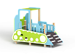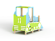Бульдозер состоит из крыши, ограждений в виде деталей бульдозера, трапа, ручек, лавочки и декоративных элементов.