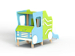 Самосвал состоит из горки, крыши, ограждений в виде деталей кузова самосвала, лавочки, руля, ручек и декоративных фанерных элементов.
