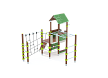 Универсальный комплекс состоит из четырех башен с площадками, соединенных между собой сеткой, радиусным мостом и подвесным мостом. На трех башнях установлена крыша. Столбы башен выполнены из клееной древесины диаметром 125 мм. Все металлические гимнастические элементы выполнены из стали с оцинкованным покрытием, с антивандальными и безопасными соединениями между собой. Оцинковка металла производится методом электрохимической гальванизации. Скат горки выполнен из нержавеющей стали. Сетки и канаты изготовлены из многожильного армированного износостойкого каната. Площадка радиусного моста и ступени подвесного моста выполнены из экструдированного высокомолекулярного полиэтилена. Площадки башен, ограждения башен, борта и ограждения горки выполнены из HPL пластика.