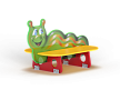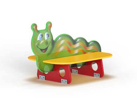 Фанерная лавочка в форме гусеницы с художественным оформлением.