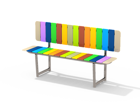 Каркас лавочки со спинкой выполнен из стали с оцинкованным покрытием. Оцинковка металла производится методом электрохимической гальванизации. Накладки сидения и спинки изготовлены из HPL пластика.