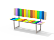Каркас лавочки со спинкой выполнен из стали с оцинкованным покрытием. Оцинковка металла производится методом электрохимической гальванизации. Накладки сидения и спинки изготовлены из HPL пластика.