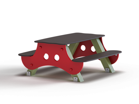 Столик состоит из несущих опор, фанерных сидений, столешницы и фасонных боковых стенок.