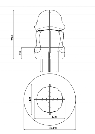 Столик с навесом выполнен из фанеры в форме медузы с художественно оформленной поверхностью.