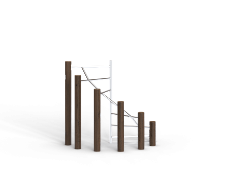 Первый - деревянные столбы и брёвна выполнены из лиственницы, имеют естественную природную форму, тщательно отшлифованы и обладают высочайшей прочностью.