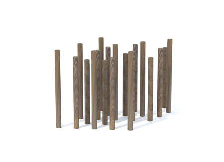 Первый - деревянные столбы и брёвна выполнены из лиственницы, имеют естественную природную форму, тщательно отшлифованы и обладают высочайшей прочностью.