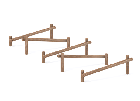 Первый - деревянные столбы и брёвна выполнены из лиственницы, имеют естественную природную форму, тщательно отшлифованы и обладают высочайшей прочностью.