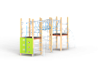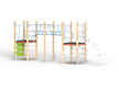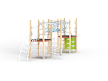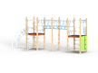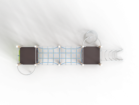 Спортивный комплекс сосоит из двух башен соединенных вертикальной сеткой полипропиленовой. На башнях установлены перекладины усиленные, лиана, шест, шест спираль, перекладины, ручки вспомогательные, альпинистская стенка и перекладина с канатом.