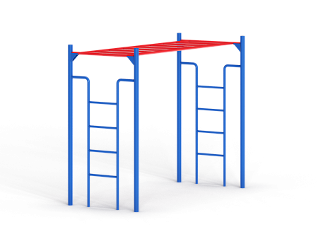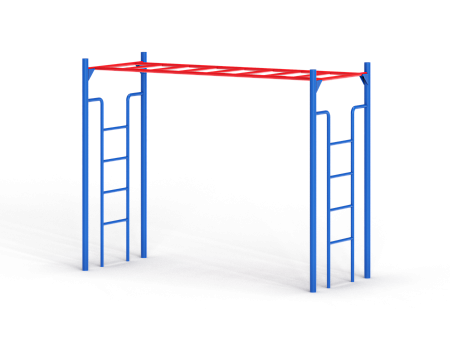 Спортивный комплекс выполнен из металлического каркаса состоящего из трех частей: двух боковых стоек с лестницами и рукохода.