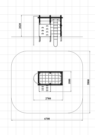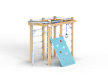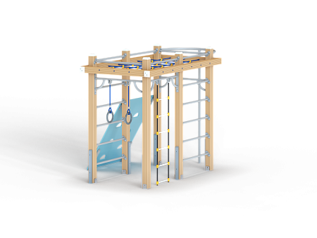 Спортивный комплекс оборудован шестом, шведскими стенками, кольцами гимнастическими, лестницей полипропиленовой, горизонтальной сеткой полипропиленоыой, перекладинами и альпинистской стенкой наклонной.
