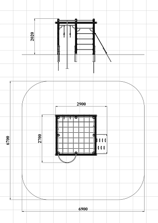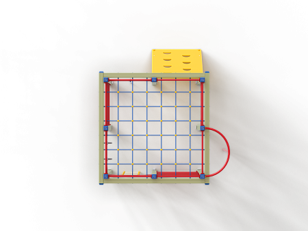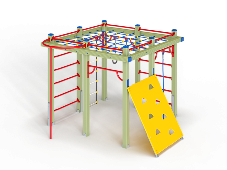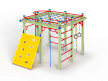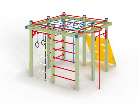 Спортивный комплекс оборудован сеткой полипропиленовой горизонтальной, шестом, шведскими стенками, альпинисткой стенкой наклонной, кольцам гимнастическими, лестницей полипропиленовой и канатом.