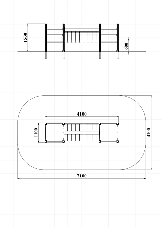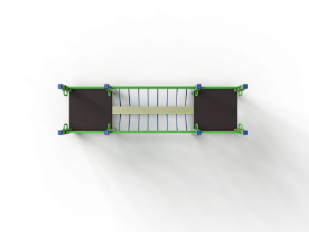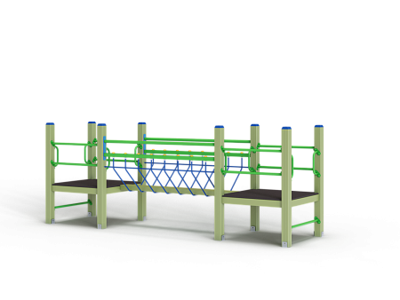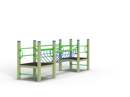 Комплекс состоит из дух башен соединенных подвесным качающимся мостом. На башнях установлены ручки вспомогательные и перекладины.